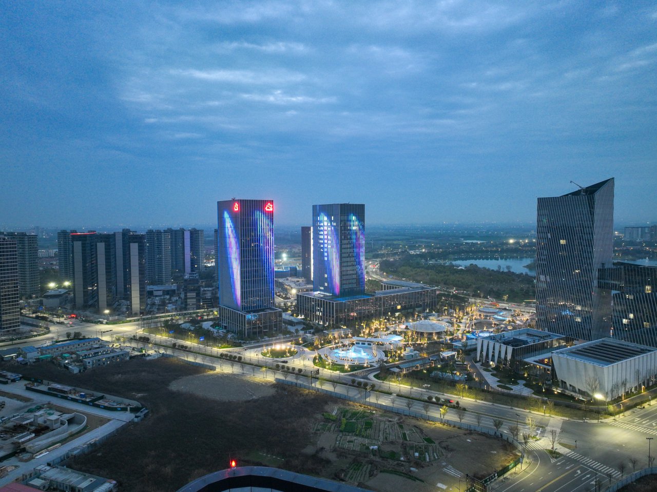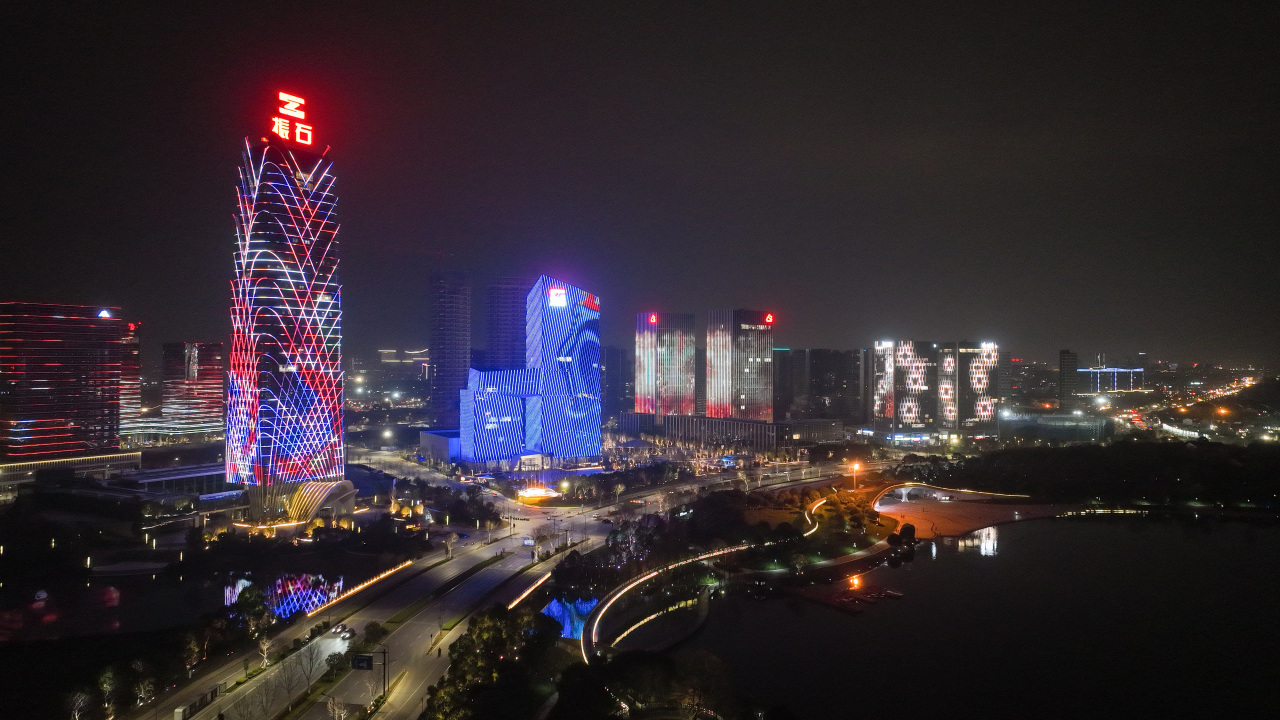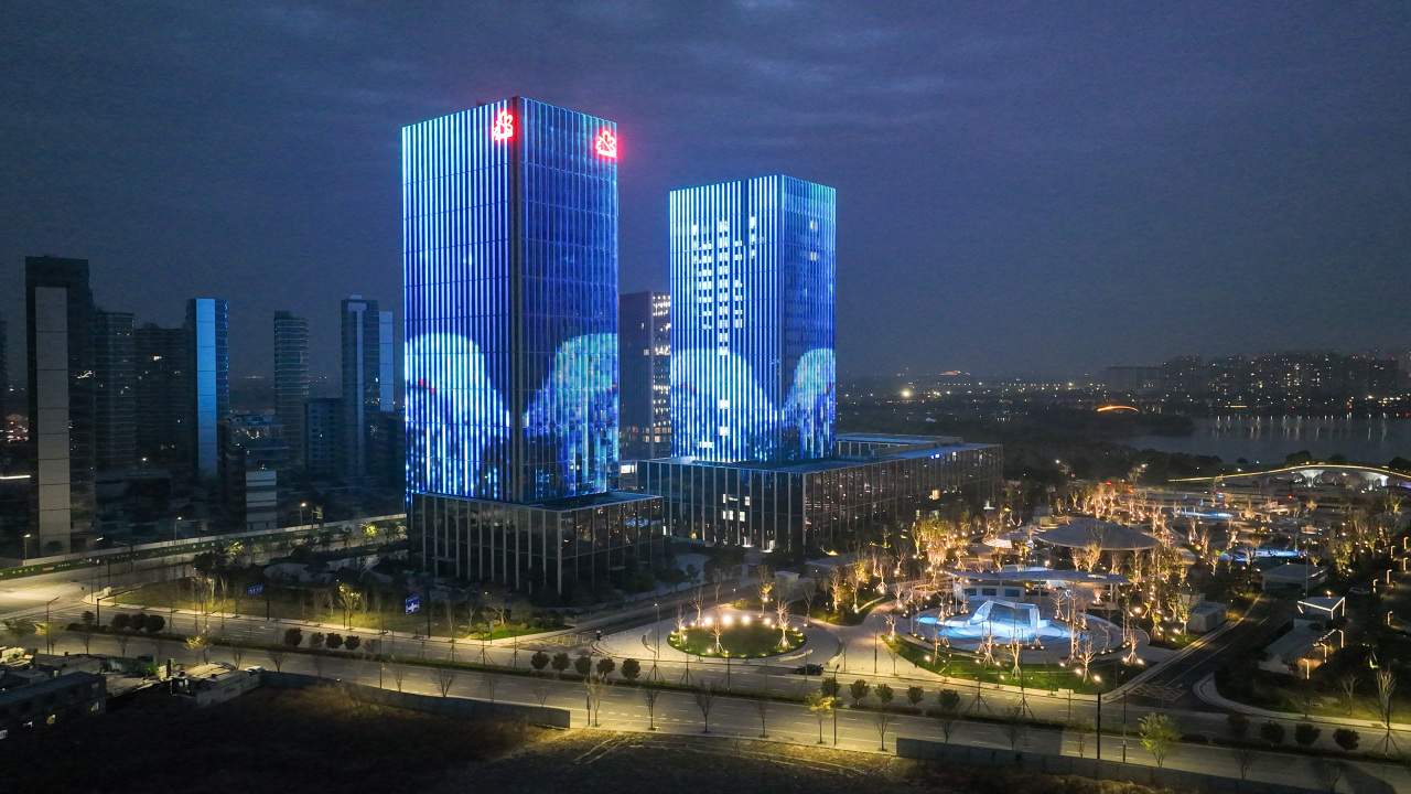 工程目的:為了提升桐昆集團總部大樓的夜間景觀效果,突出其建筑特色和企業形象,同時節約能源和保護環境,采用了泛光照明的方式對建筑外立面進行燈光設計和施工。